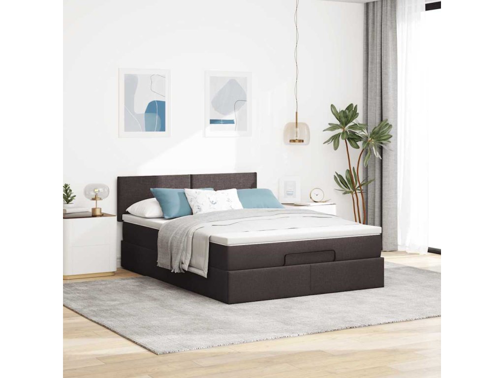 Multidom Osmanská posteľ s matracom a LED diódami tmavohnedá látka