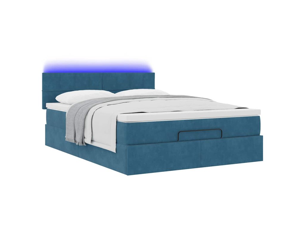 Multidom osmanská posteľ s matracom a LED diódami tmavomodrá zamat