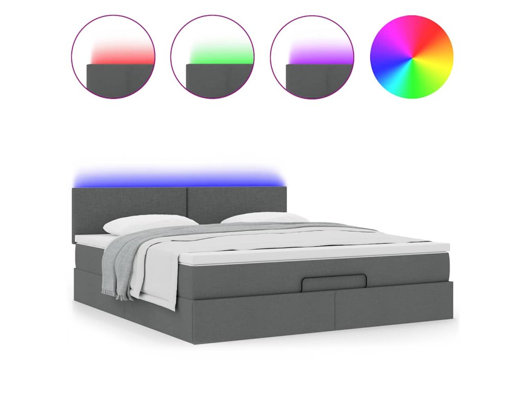 - LED svetlá pre príjemnú atmosféru: Táto posteľ je vybavená LED svetlami, ktoré sa dajú jednoducho nastaviť a vytvoriť tak individuálnu svetelnú šou. Môžete si prispôsobiť režimy, farby a jas, aby ste zlepšili atmosféru svojho interiéru.