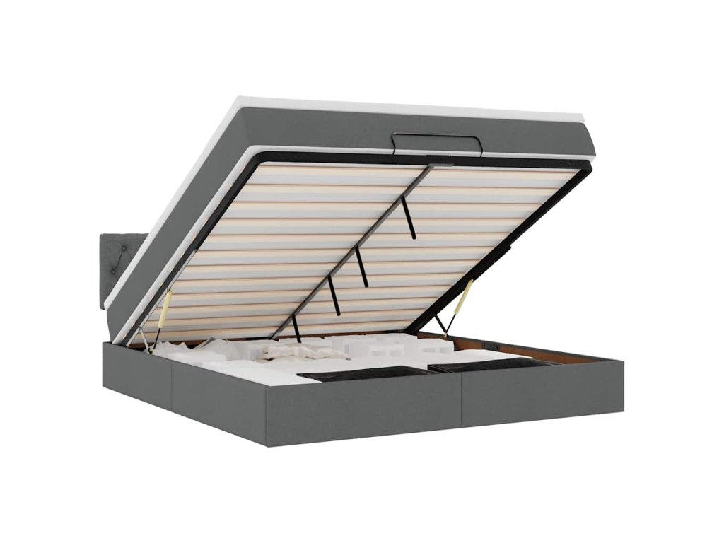 - Veľký úložný priestor pod posteľou: Vďaka hydraulickému zdvíhaciemu mechanizmu ponúka rám postele dostatok úložného priestoru pod posteľou, čím sa maximalizuje priestor bez toho, aby zaberal ďalšiu podlahovú plochu. Jednoduchým potiahnutím rukoväte sa lamelová základňa hladko zdvihne, čo vám umožní získať veci rýchlo a bez námahy.