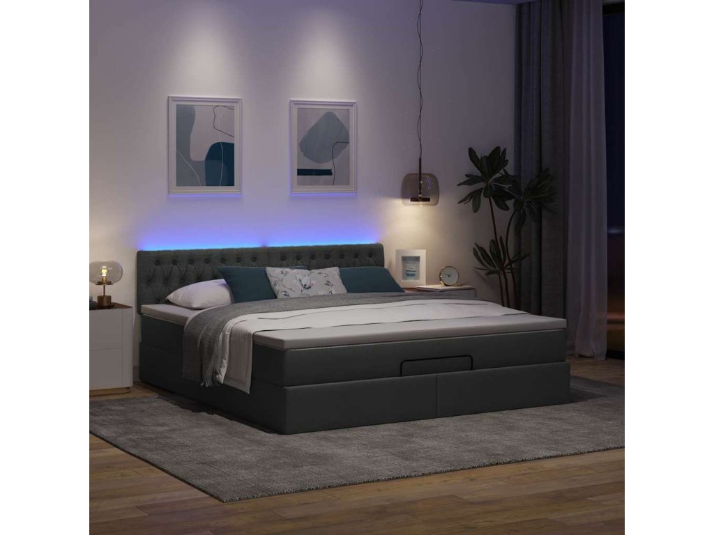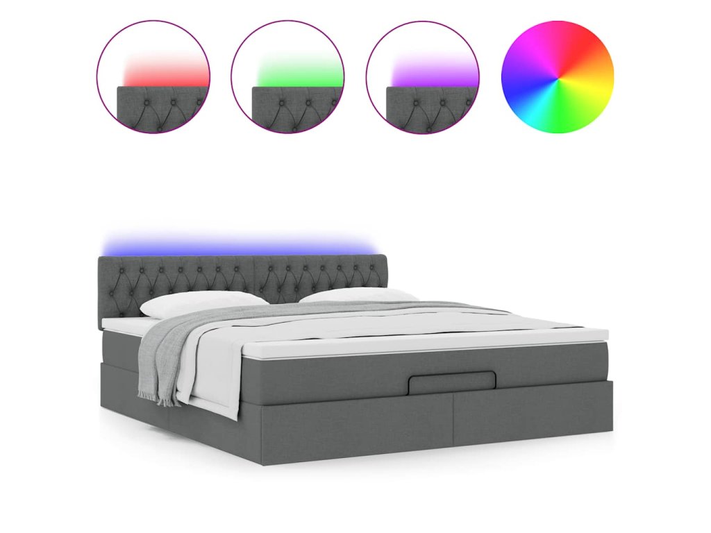 Multidom Osmanská posteľ s matracom a LED diódami tmavosivá látka