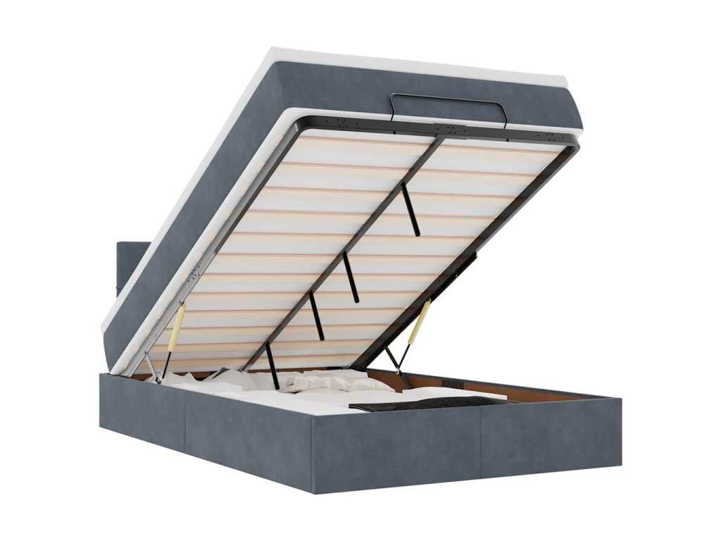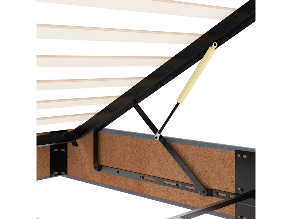 - Veľký úložný priestor pod posteľou: Vďaka hydraulickému zdvíhaciemu mechanizmu ponúka rám postele dostatok úložného priestoru pod posteľou, čím sa maximalizuje priestor bez toho, aby zaberal ďalšiu podlahovú plochu. Jednoduchým potiahnutím rukoväte sa lamelová základňa hladko zdvihne, čo vám umožní získať veci rýchlo a bez námahy.