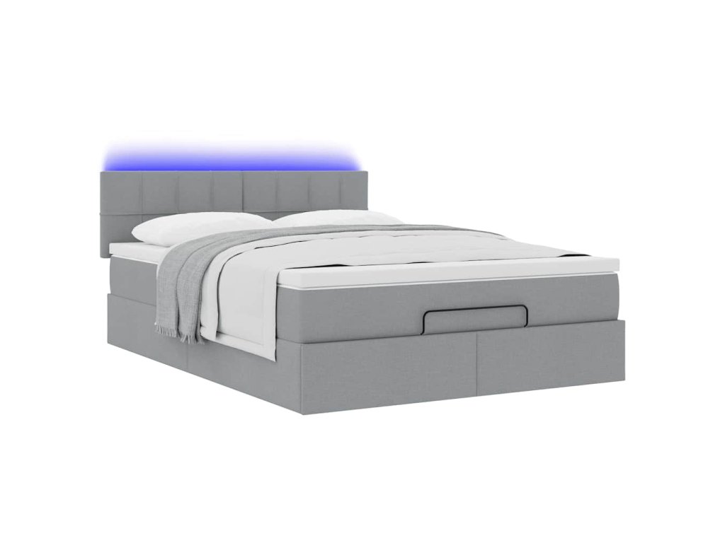 Multidom Osmanská posteľ s matracom a LED svetlosivá látka 140x200 cm
