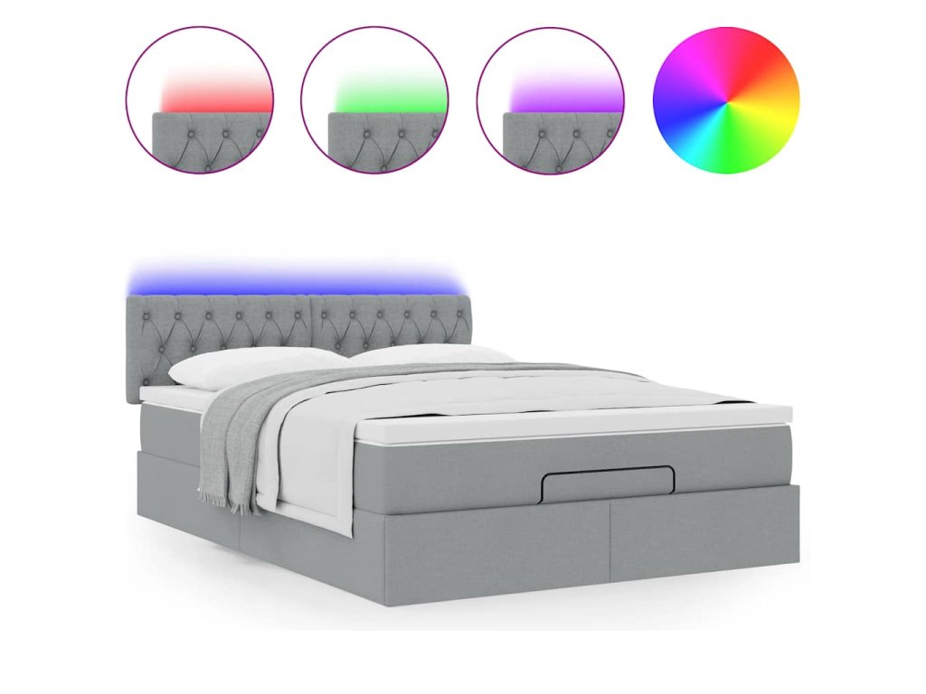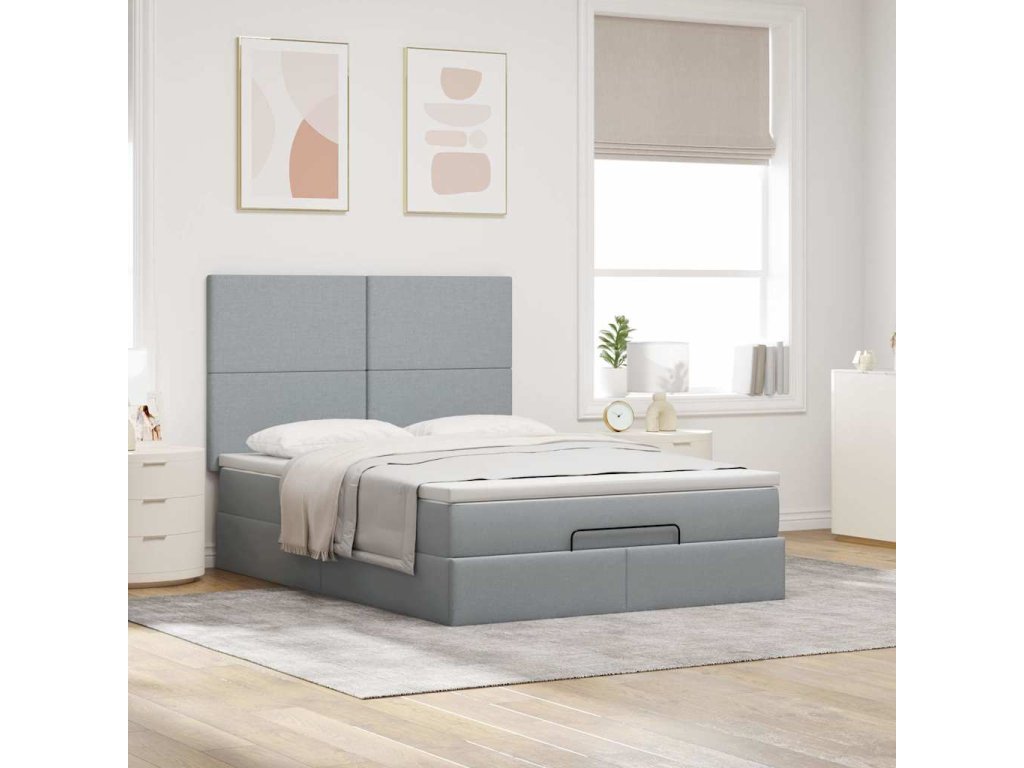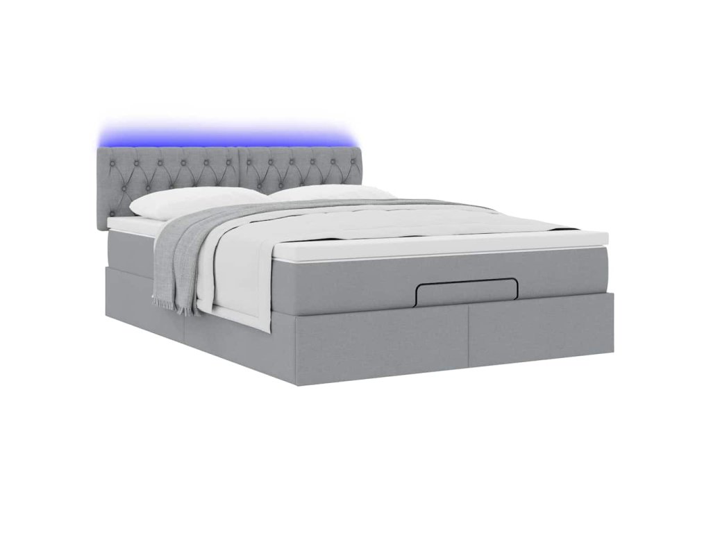 Multidom Osmanská posteľ s matracom a LED svetlosivá látka 140x200 cm