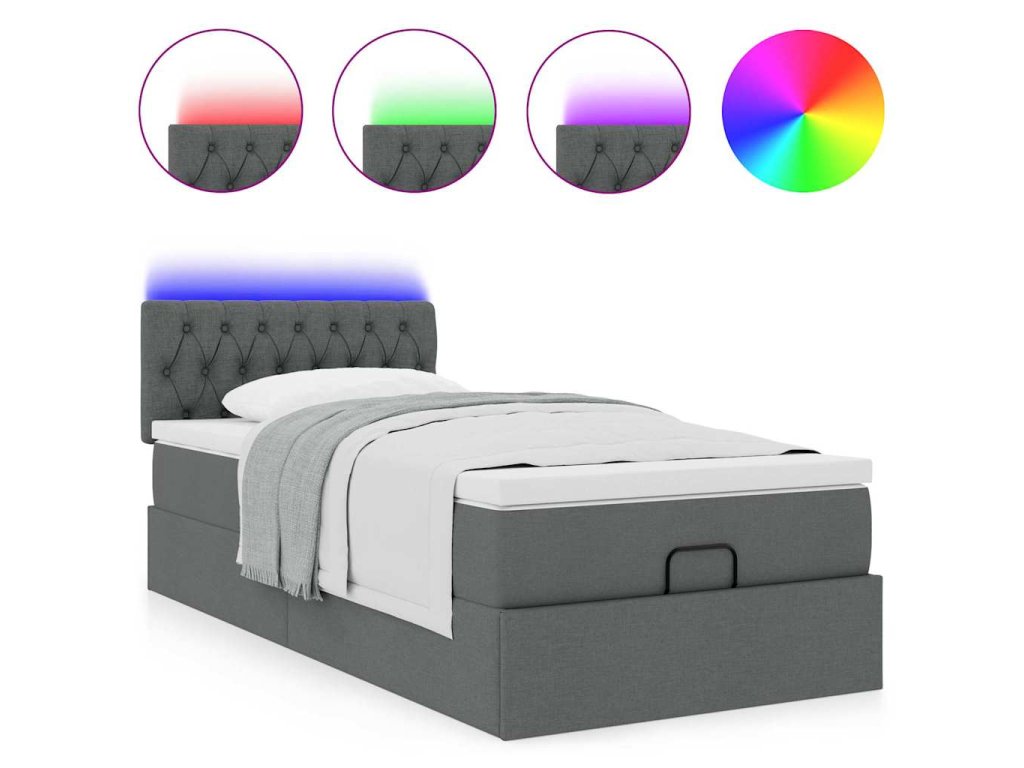 Multidom Osmanská posteľ s matracom a LED tmavosivá 90x200 cm látka