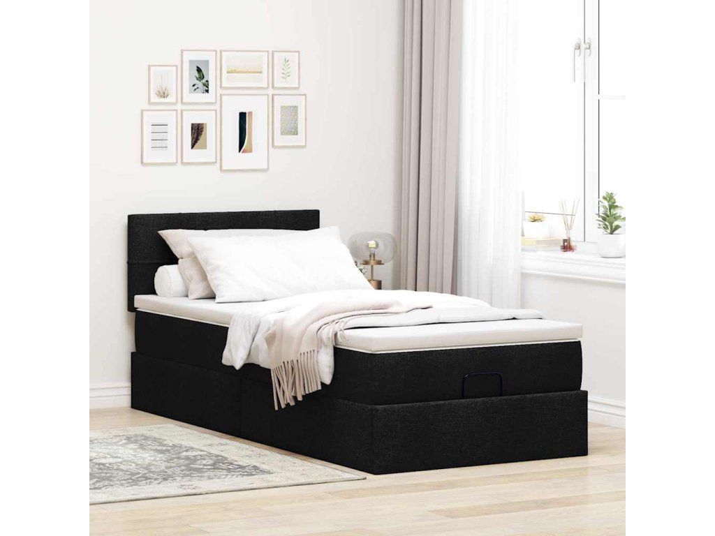 Multidom Osmanská posteľ s matracom čierna 90x200 cm látka