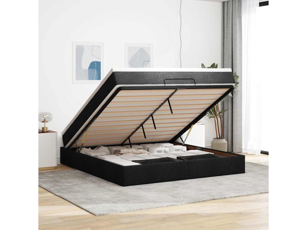 Multidom Osmanská posteľ s matracom Čierna látka 160x200cm