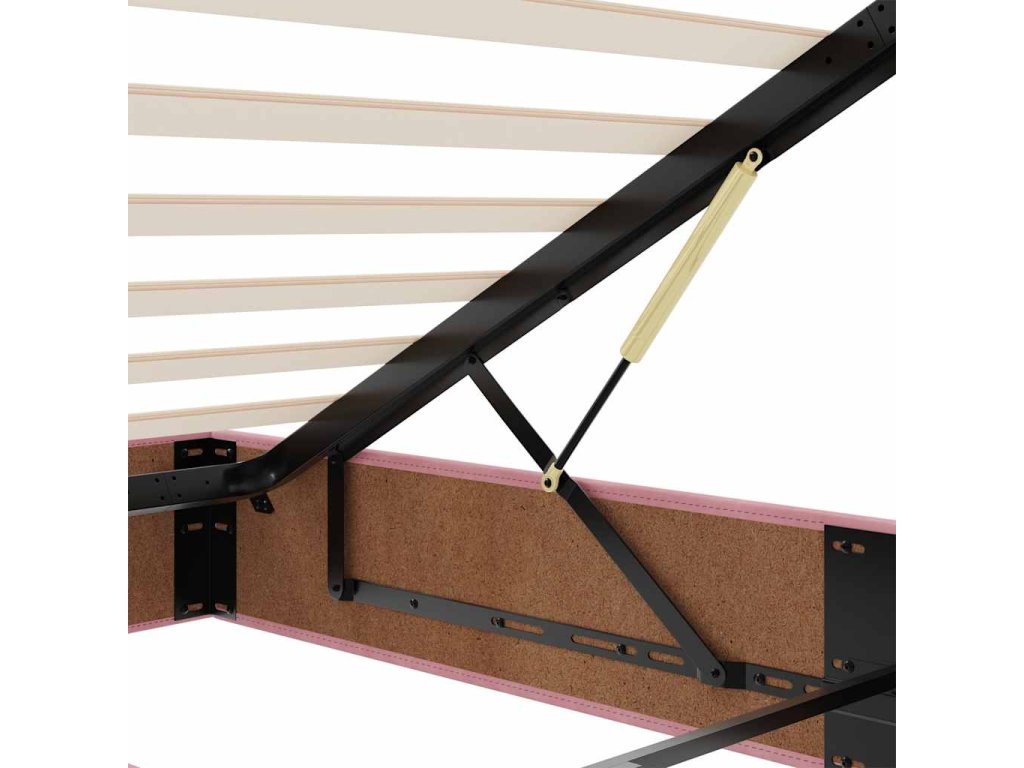 - Veľký úložný priestor pod posteľou: Vďaka hydraulickému zdvíhaciemu mechanizmu ponúka rám postele dostatok úložného priestoru pod posteľou, čím sa maximalizuje priestor bez toho, aby zaberal ďalšiu podlahovú plochu. Jednoduchým potiahnutím rukoväte sa lamelová základňa hladko zdvihne, čo vám umožní získať veci rýchlo a bez námahy.