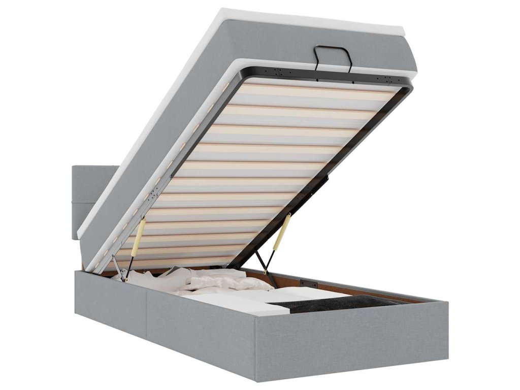 - Veľký úložný priestor pod posteľou: Vďaka hydraulickému zdvíhaciemu mechanizmu ponúka rám postele dostatok úložného priestoru pod posteľou, čím sa maximalizuje priestor bez toho, aby zaberal ďalšiu podlahovú plochu. Jednoduchým potiahnutím rukoväte sa lamelová základňa hladko zdvihne, čo vám umožní získať veci rýchlo a bez námahy.