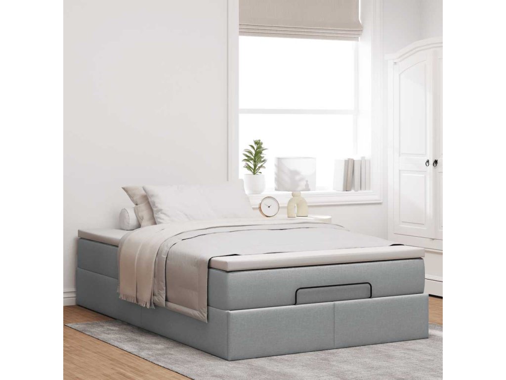 Multidom Osmanská posteľ s matracom svetlosivá 120x200 cm látka