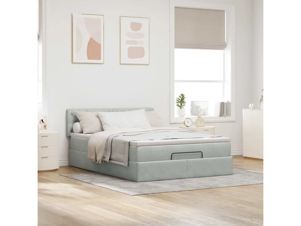 Multidom Osmanská posteľ s matracom Svetlosivá 140x190 cm Zamat