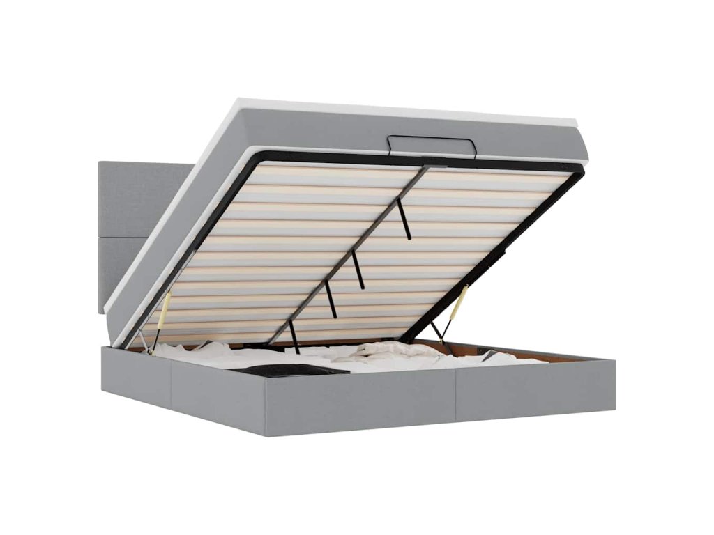 - Veľký úložný priestor pod posteľou: Vďaka hydraulickému zdvíhaciemu mechanizmu ponúka rám postele dostatok úložného priestoru pod posteľou, čím sa maximalizuje priestor bez toho, aby zaberal ďalšiu podlahovú plochu. Jednoduchým potiahnutím rukoväte sa lamelová základňa hladko zdvihne, čo vám umožní získať veci rýchlo a bez námahy.