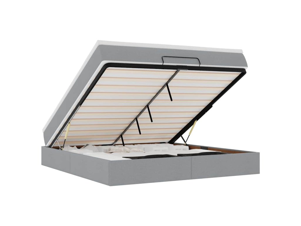 - Veľký úložný priestor pod posteľou: Vďaka hydraulickému zdvíhaciemu mechanizmu ponúka rám postele dostatok úložného priestoru pod posteľou, čím sa maximalizuje priestor bez toho, aby zaberal ďalšiu podlahovú plochu. Jednoduchým potiahnutím rukoväte sa lamelová základňa hladko zdvihne, čo vám umožní získať veci rýchlo a bez námahy.