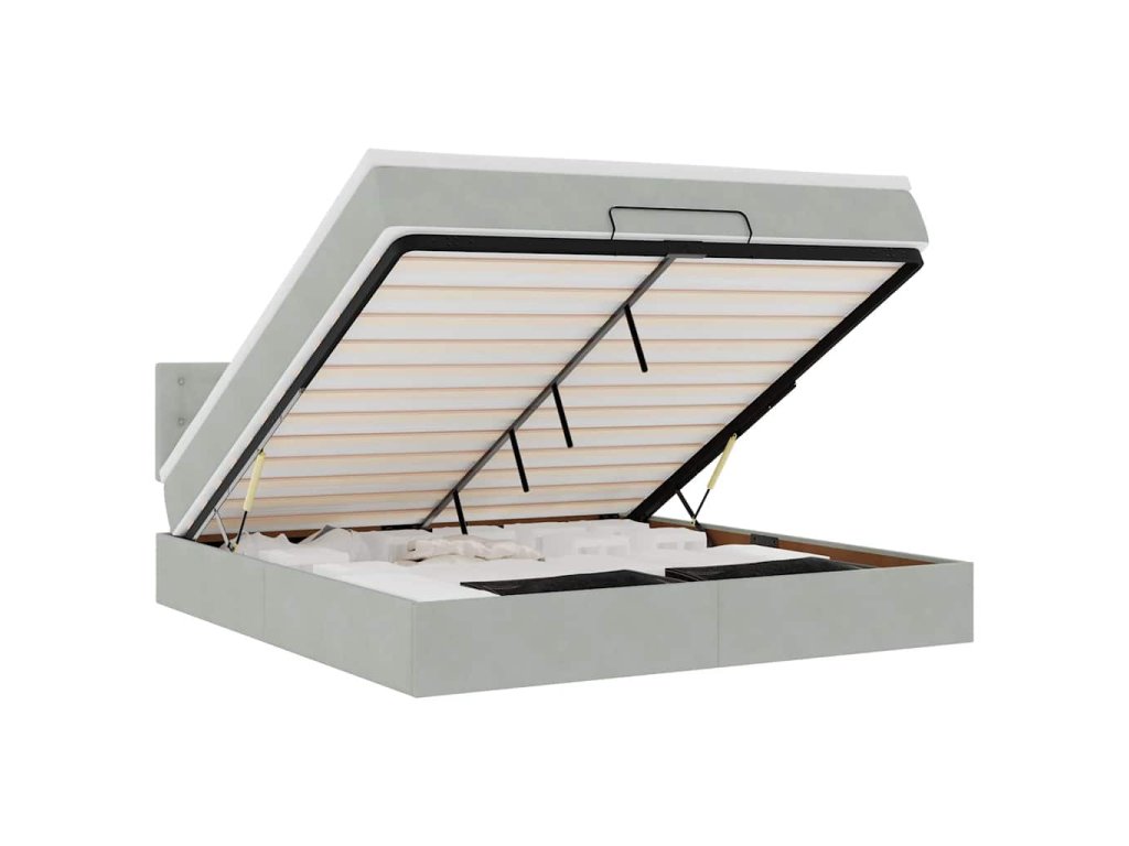 - Veľký úložný priestor pod posteľou: Vďaka hydraulickému zdvíhaciemu mechanizmu ponúka rám postele dostatok úložného priestoru pod posteľou, čím sa maximalizuje priestor bez toho, aby zaberal ďalšiu podlahovú plochu. Jednoduchým potiahnutím rukoväte sa lamelová základňa hladko zdvihne, čo vám umožní získať veci rýchlo a bez námahy.