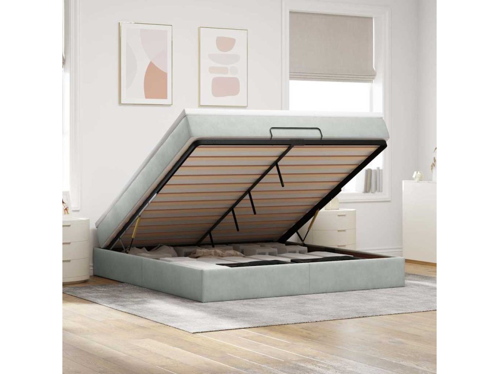 - Veľký úložný priestor pod posteľou: Vďaka hydraulickému zdvíhaciemu mechanizmu ponúka rám postele dostatok úložného priestoru pod posteľou, čím sa maximalizuje priestor bez toho, aby zaberal ďalšiu podlahovú plochu. Jednoduchým potiahnutím rukoväte sa lamelová základňa hladko zdvihne, čo vám umožní získať veci rýchlo a bez námahy.