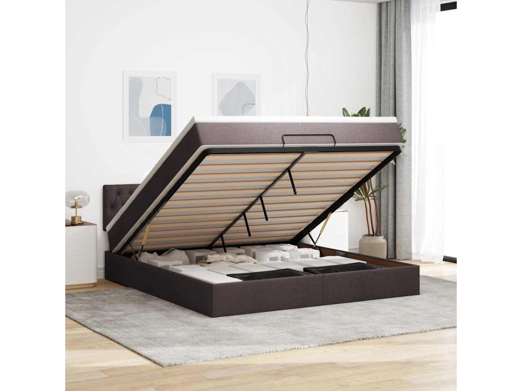 Multidom Osmanská posteľ s matracom Tmavohnedá 160x200cm Látka