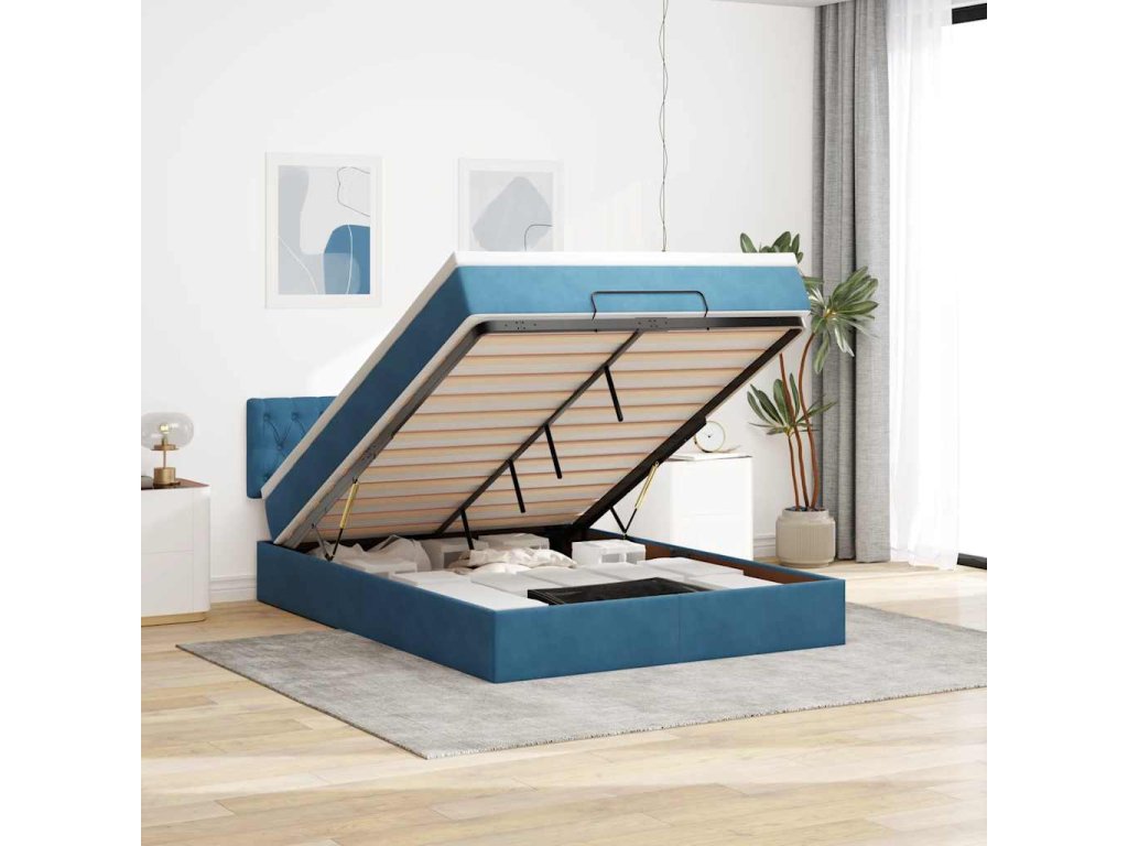 Multidom Osmanská posteľ s matracom Tmavomodrá 140x190cm Zamat