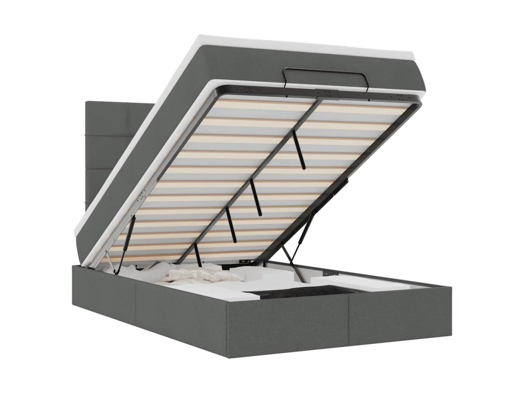 - Veľký úložný priestor pod posteľou: Vďaka hydraulickému zdvíhaciemu mechanizmu ponúka rám postele dostatok úložného priestoru pod posteľou, čím sa maximalizuje priestor bez toho, aby zaberal ďalšiu podlahovú plochu. Jednoduchým potiahnutím rukoväte sa lamelová základňa hladko zdvihne, čo vám umožní získať veci rýchlo a bez námahy.
