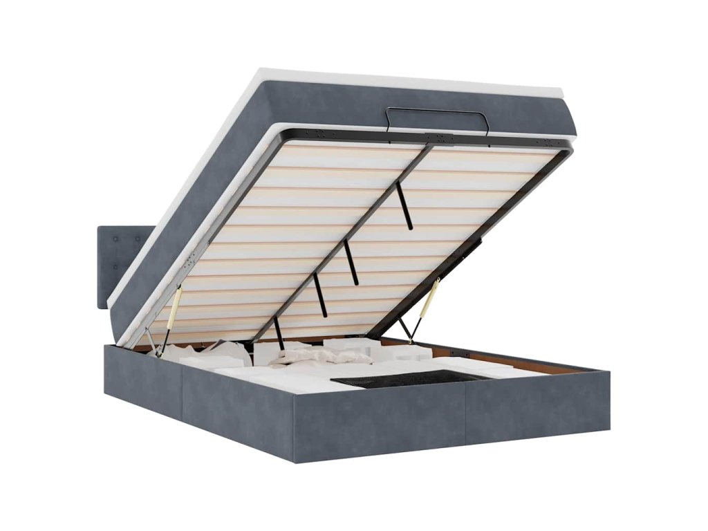 - Veľký úložný priestor pod posteľou: Vďaka hydraulickému zdvíhaciemu mechanizmu ponúka rám postele dostatok úložného priestoru pod posteľou, čím sa maximalizuje priestor bez toho, aby zaberal ďalšiu podlahovú plochu. Jednoduchým potiahnutím rukoväte sa lamelová základňa hladko zdvihne, čo vám umožní získať veci rýchlo a bez námahy.