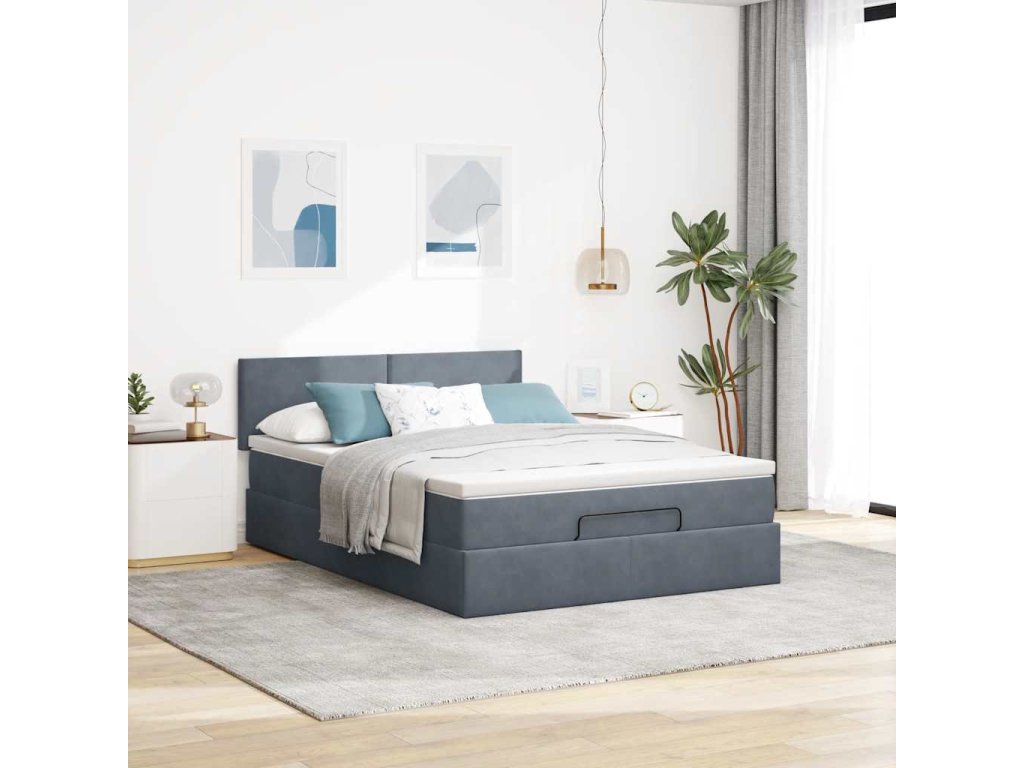 Multidom Osmanská posteľ s matracom tmavosivá 140x200cm zamat