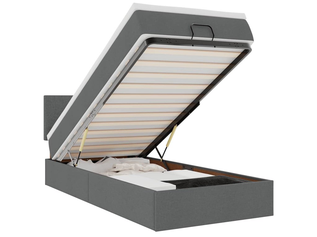 - Veľký úložný priestor pod posteľou: Vďaka hydraulickému zdvíhaciemu mechanizmu ponúka rám postele dostatok úložného priestoru pod posteľou, čím sa maximalizuje priestor bez toho, aby zaberal ďalšiu podlahovú plochu. Jednoduchým potiahnutím rukoväte sa lamelová základňa hladko zdvihne, čo vám umožní získať veci rýchlo a bez námahy.