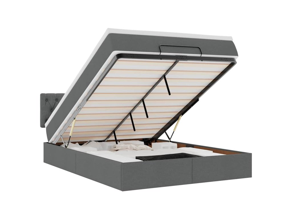 - Veľký úložný priestor pod posteľou: Vďaka hydraulickému zdvíhaciemu mechanizmu ponúka rám postele dostatok úložného priestoru pod posteľou, čím sa maximalizuje priestor bez toho, aby zaberal ďalšiu podlahovú plochu. Jednoduchým potiahnutím rukoväte sa lamelová základňa hladko zdvihne, čo vám umožní získať veci rýchlo a bez námahy.