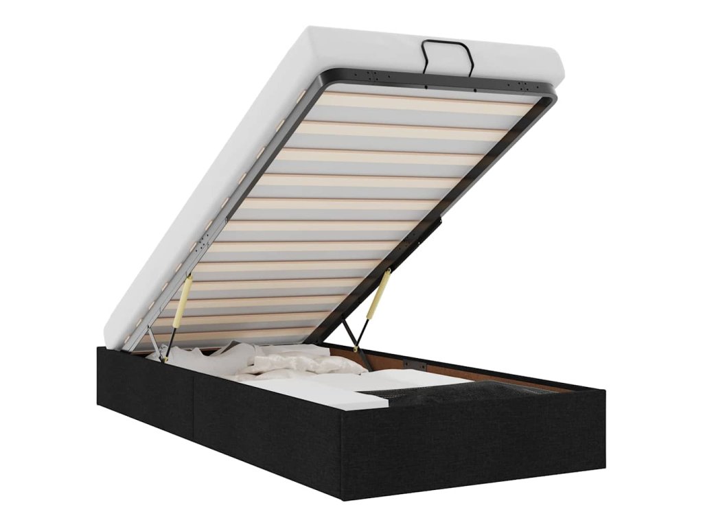 - Pohodlný zdvíhací mechanizmus: Integrovaný hydraulický zdvíhací mechanizmus poskytuje ľahký prístup k vašim veciam uloženým pod posteľou. Jednoduchým potiahnutím rukoväte sa lamelová základňa hladko zdvihne, čo vám umožní získať veci rýchlo a bez námahy.