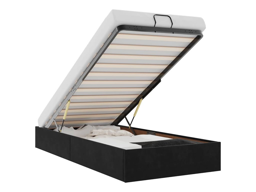 - Pohodlný zdvíhací mechanizmus: Integrovaný hydraulický zdvíhací mechanizmus poskytuje ľahký prístup k vašim veciam uloženým pod posteľou. Jednoduchým potiahnutím rukoväte sa lamelová základňa hladko zdvihne, čo vám umožní získať veci rýchlo a bez námahy.