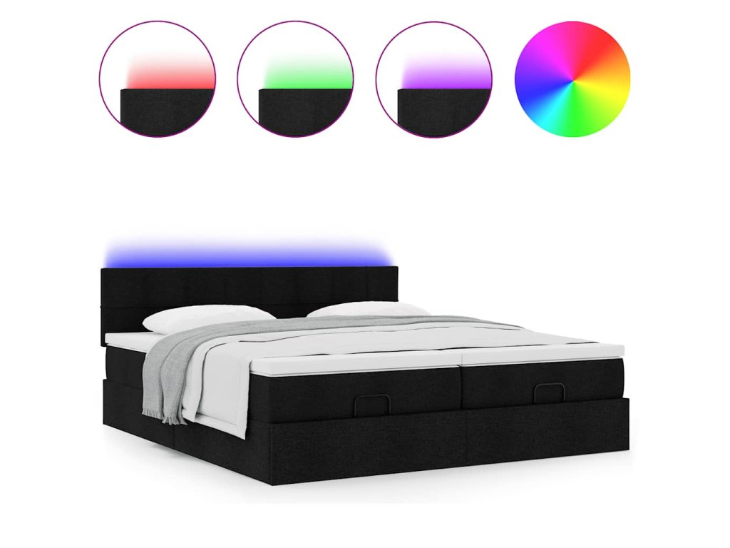 - LED svetlá pre príjemnú atmosféru: Táto posteľ je vybavená LED svetlami, ktoré sa dajú jednoducho nastaviť a vytvoriť tak individuálnu svetelnú šou. Môžete si prispôsobiť režimy, farby a jas, aby ste zlepšili atmosféru svojho interiéru.