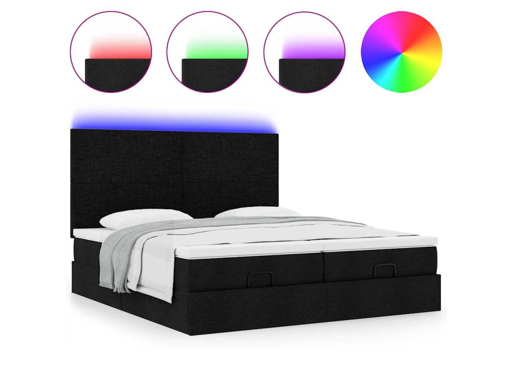 - LED svetlá pre príjemnú atmosféru: Táto posteľ je vybavená LED svetlami, ktoré sa dajú jednoducho nastaviť a vytvoriť tak individuálnu svetelnú šou. Môžete si prispôsobiť režimy, farby a jas, aby ste zlepšili atmosféru svojho interiéru.