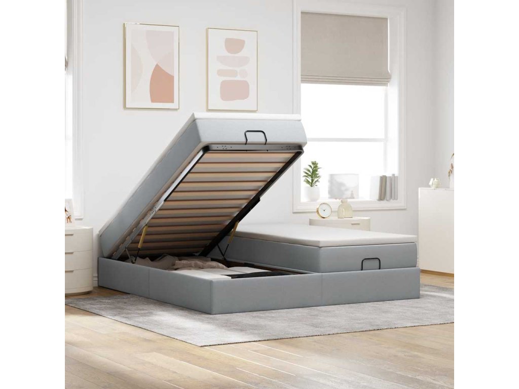 Multidom Osmanský rám postele s matracmi svetlosivá 160x200 cm látka