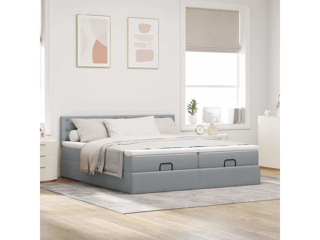 Multidom Osmanský rám postele s matracmi svetlosivá 180x200 cm látka