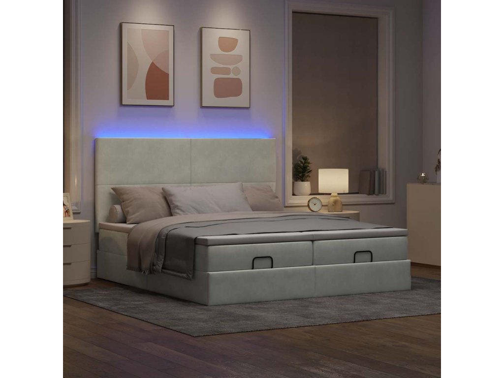 Multidom Osmanský rám postele s matracmi svetlosivá 180x200 cm zamat