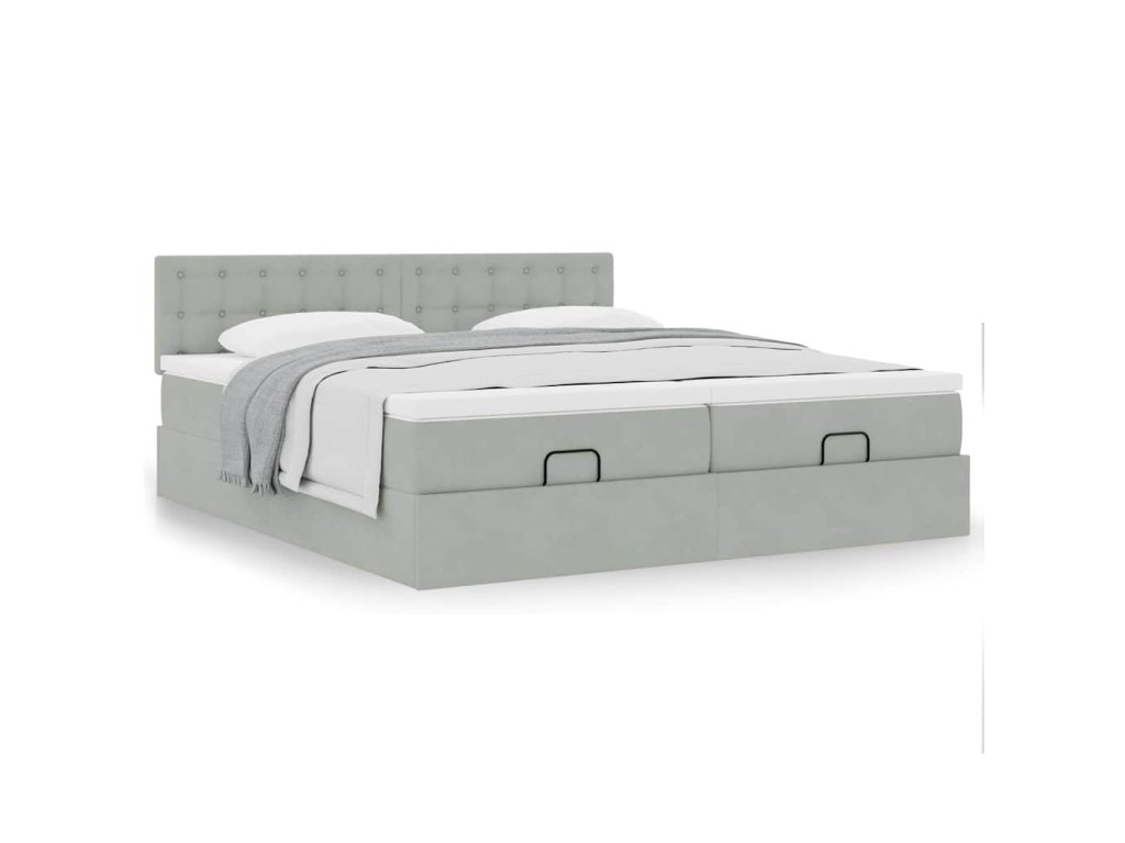 Multidom Osmanský rám postele s matracmi svetlosivá 180x200 cm zamat
