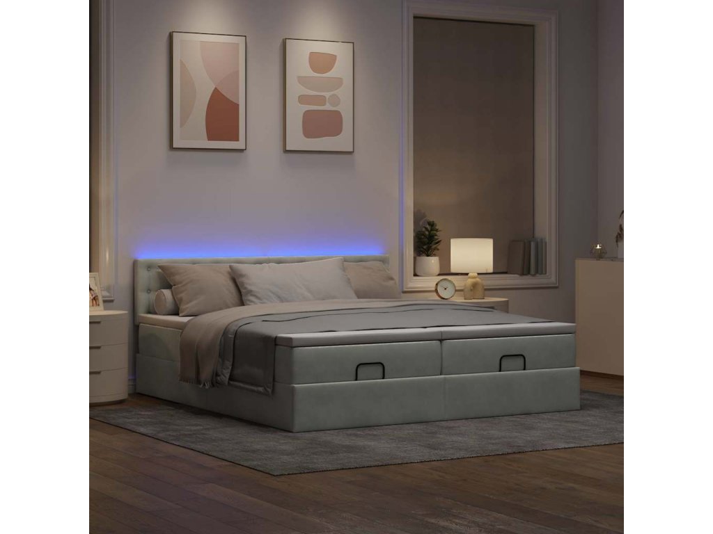 Multidom Osmanský rám postele s matracmi svetlosivá 180x200 cm zamat