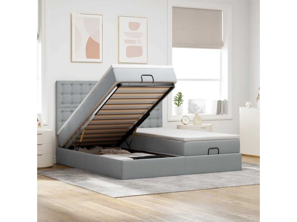 Multidom Osmanský rám postele s matracmi svetlosivá 200x200 cm látka