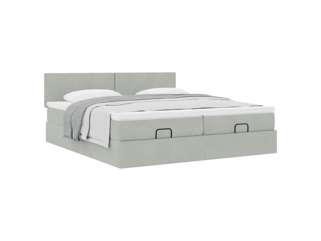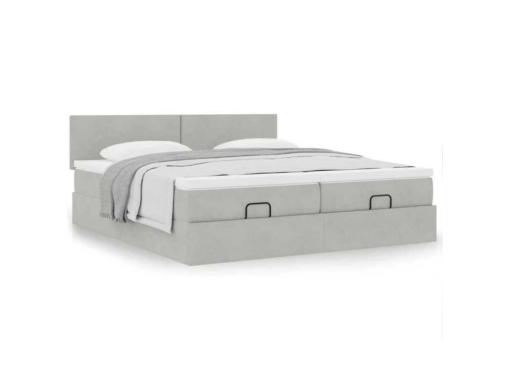 Multidom Osmanský rám postele s matracmi svetlosivá 200x200 cm zamat