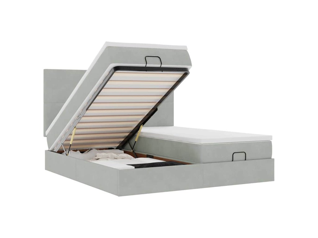 - Veľký úložný priestor pod posteľou: Vďaka hydraulickému zdvíhaciemu mechanizmu ponúka rám postele dostatok úložného priestoru pod posteľou, čím sa maximalizuje priestor bez toho, aby zaberal ďalšiu podlahovú plochu. Jednoduchým potiahnutím rukoväte sa lamelová základňa hladko zdvihne, čo vám umožní získať veci rýchlo a bez námahy.