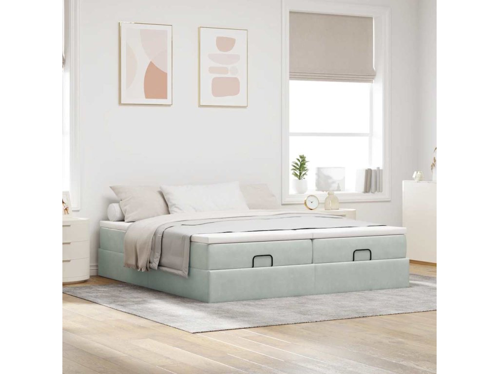 Multidom Osmanský rám postele s matracmi svetlosivá 200x200 cm zamat