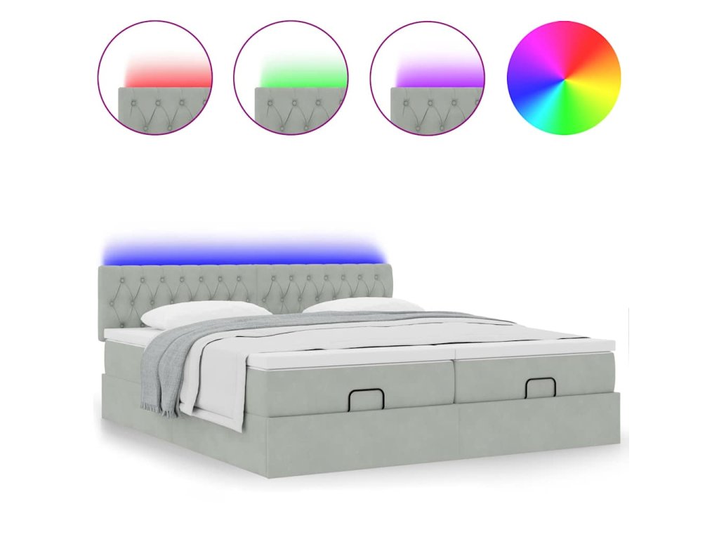 - LED svetlá pre príjemnú atmosféru: Táto posteľ je vybavená LED svetlami, ktoré sa dajú jednoducho nastaviť a vytvoriť tak individuálnu svetelnú šou. Môžete si prispôsobiť režimy, farby a jas, aby ste zlepšili atmosféru svojho interiéru.