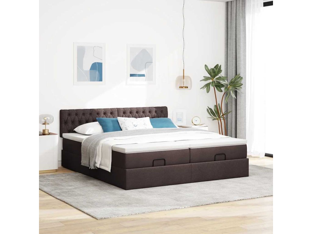 Multidom Osmanský rám postele s matracmi tmavohnedá 180x200 cm látka