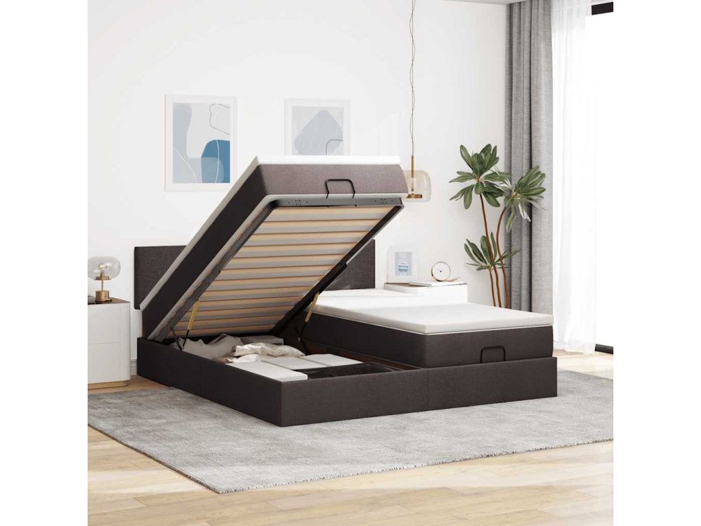 Multidom Osmanský rám postele s matracmi tmavohnedá 180x200 cm látka