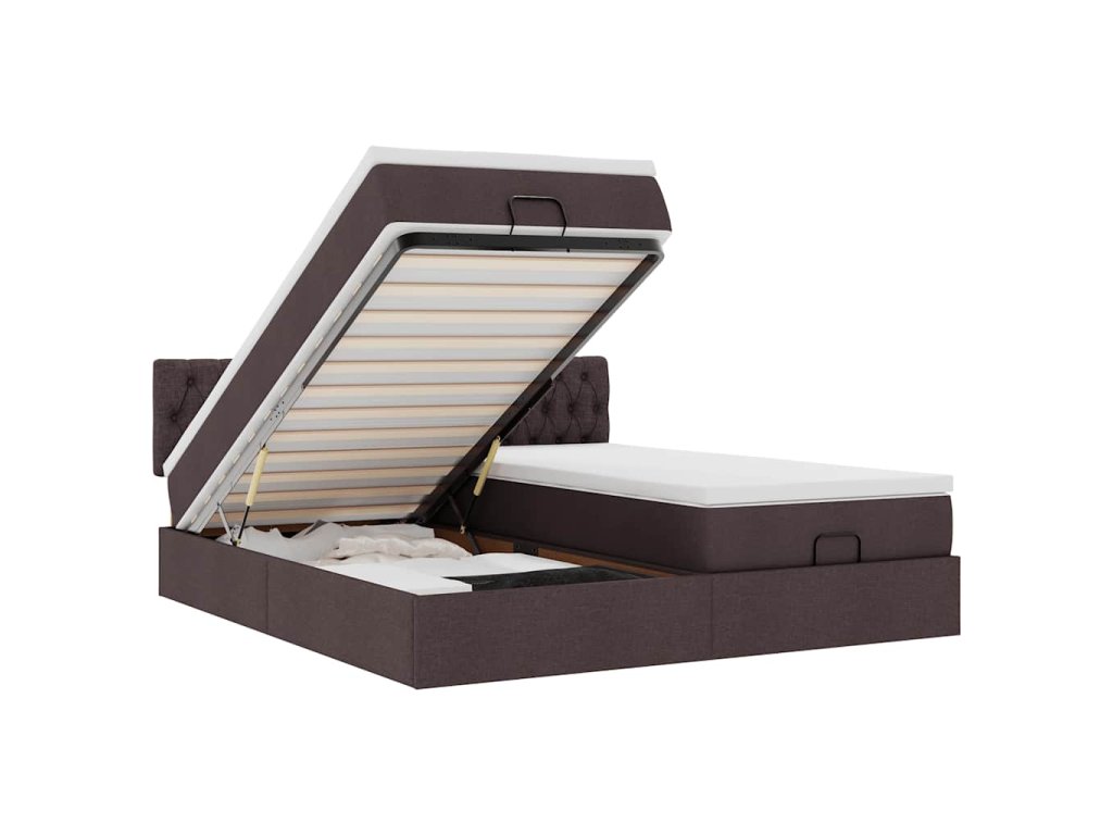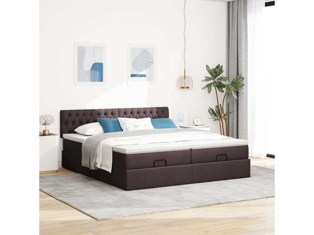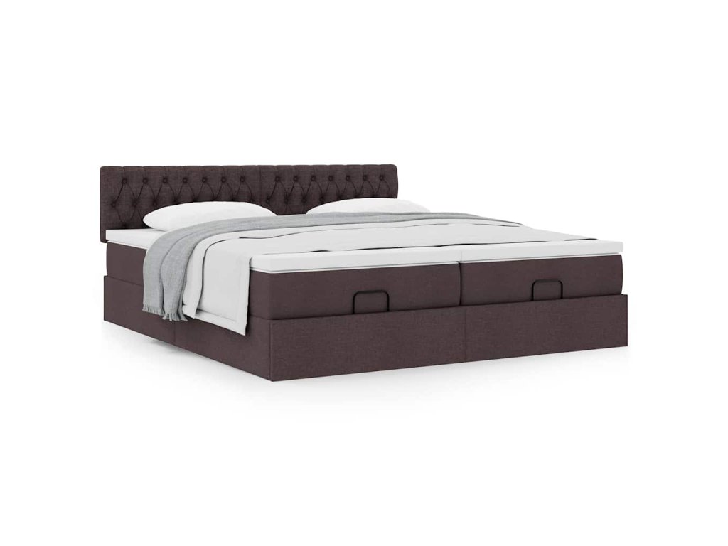 Multidom Osmanský rám postele s matracmi tmavohnedá 200x200 cm látka