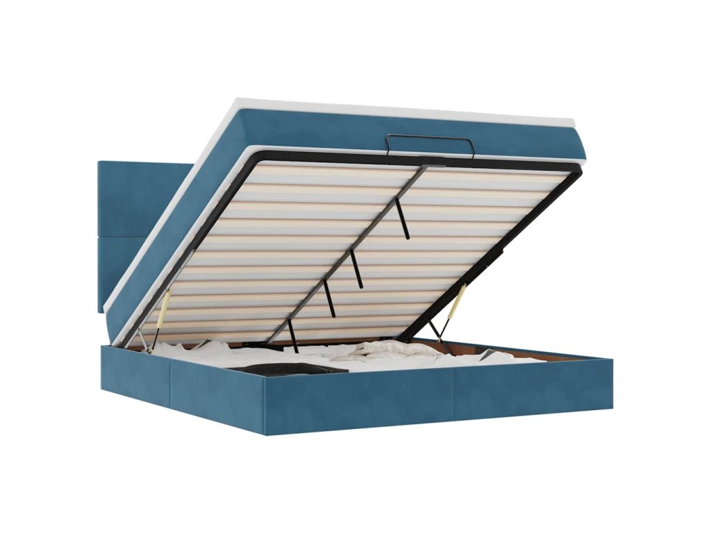 - Veľký úložný priestor pod posteľou: Vďaka hydraulickému zdvíhaciemu mechanizmu ponúka rám postele dostatok úložného priestoru pod posteľou, čím sa maximalizuje priestor bez toho, aby zaberal ďalšiu podlahovú plochu. Jednoduchým potiahnutím rukoväte sa lamelová základňa hladko zdvihne, čo vám umožní získať veci rýchlo a bez námahy.