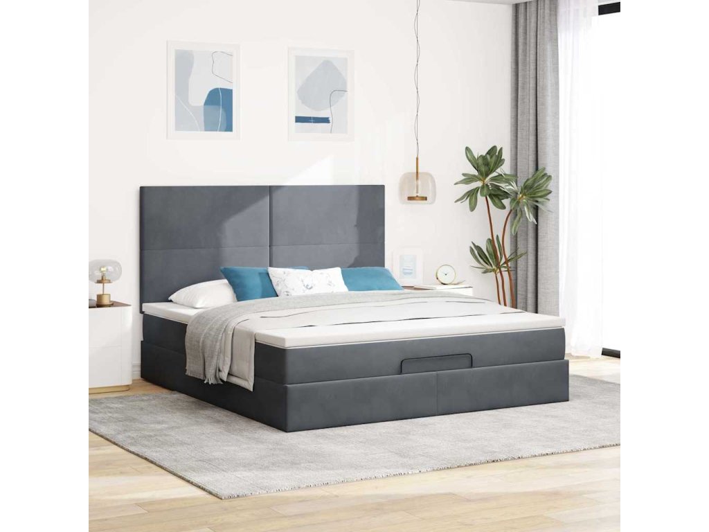 Multidom Osmanský rám postele s matracmi tmavosivá 160x200 cm zamat