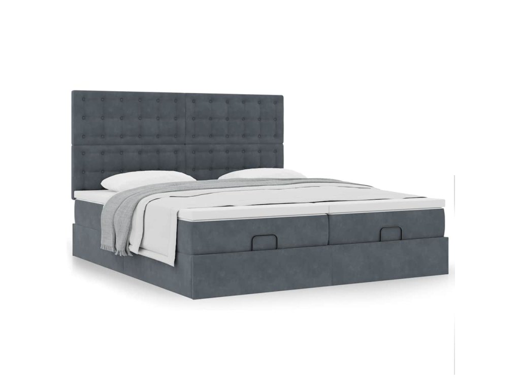 Multidom Osmanský rám postele s matracmi tmavosivá 180x200 cm zamat