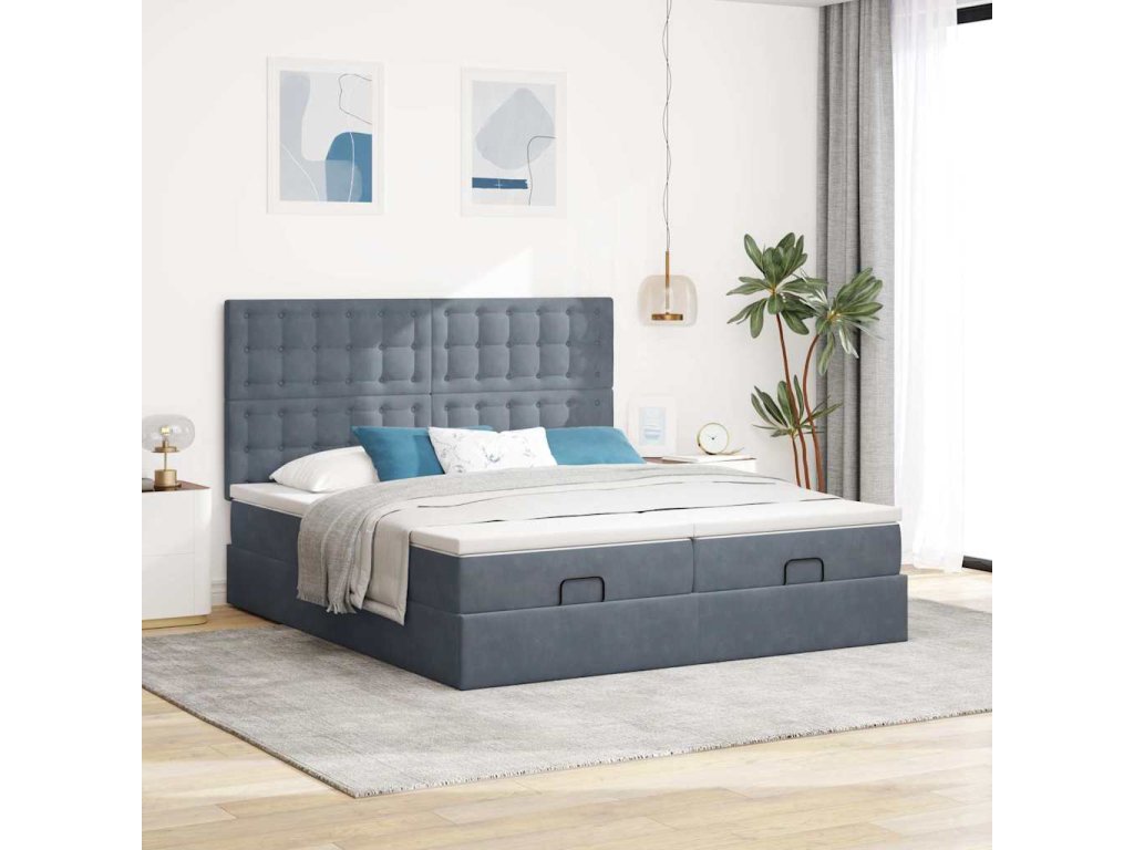 Multidom Osmanský rám postele s matracmi tmavosivá 180x200 cm zamat