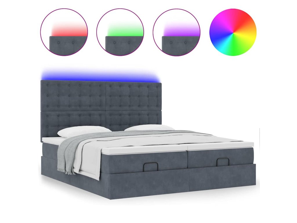- LED svetlá pre príjemnú atmosféru: Táto posteľ je vybavená LED svetlami, ktoré sa dajú jednoducho nastaviť a vytvoriť tak individuálnu svetelnú šou. Môžete si prispôsobiť režimy, farby a jas, aby ste zlepšili atmosféru svojho interiéru.