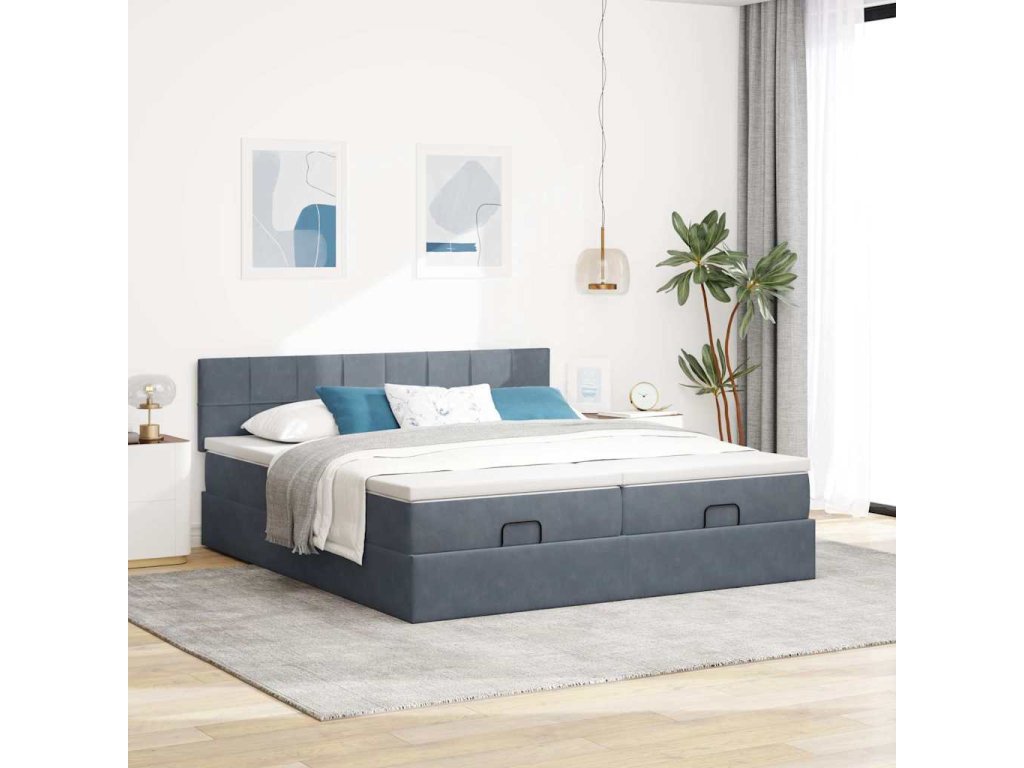 Multidom Osmanský rám postele s matracmi tmavosivá 200x200 cm zamat