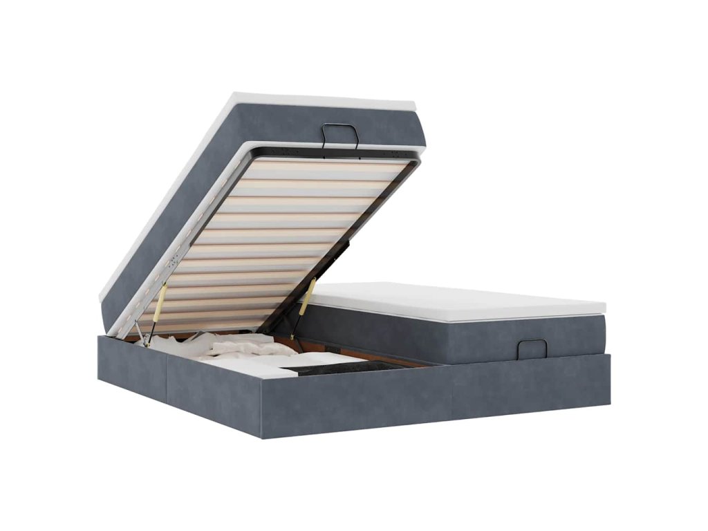 - Veľký úložný priestor pod posteľou: Vďaka hydraulickému zdvíhaciemu mechanizmu ponúka rám postele dostatok úložného priestoru pod posteľou, čím sa maximalizuje priestor bez toho, aby zaberal ďalšiu podlahovú plochu. Jednoduchým potiahnutím rukoväte sa lamelová základňa hladko zdvihne, čo vám umožní získať veci rýchlo a bez námahy.